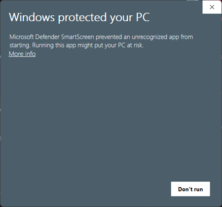 If Windows displays a “Windows protected your PC” message when running the installer, this is expected.